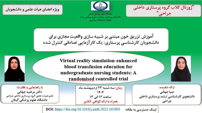 (آموزش تزریق خون مبتنی بر شبیه سازی واقعیت مجازی برای دانشجویان کارشناسی پرستاری: یک کارآزمایی تصادفی کنترل شده