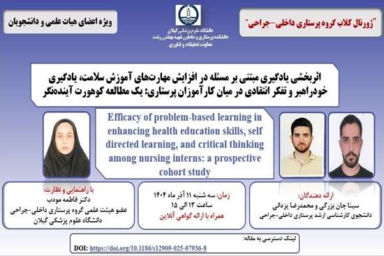 اثربخشی یادگیری مبتنی بر مسئله در افزایش مهارتهای آموزش سلامت، یادگیری خودراهبر و تفکر انتقادی در میان کارآموزان پرستاری: یک مطالعه کوهورت آیندهنگر