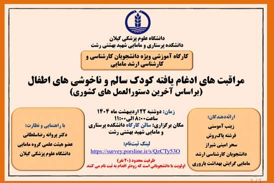 برگزاری کارگاه آموزشی ویژه دانشجویان کارشناسی و کارشناسی ارشد مامایی دانشکده پرستاری و مامایی شهید بهشتی رشت
