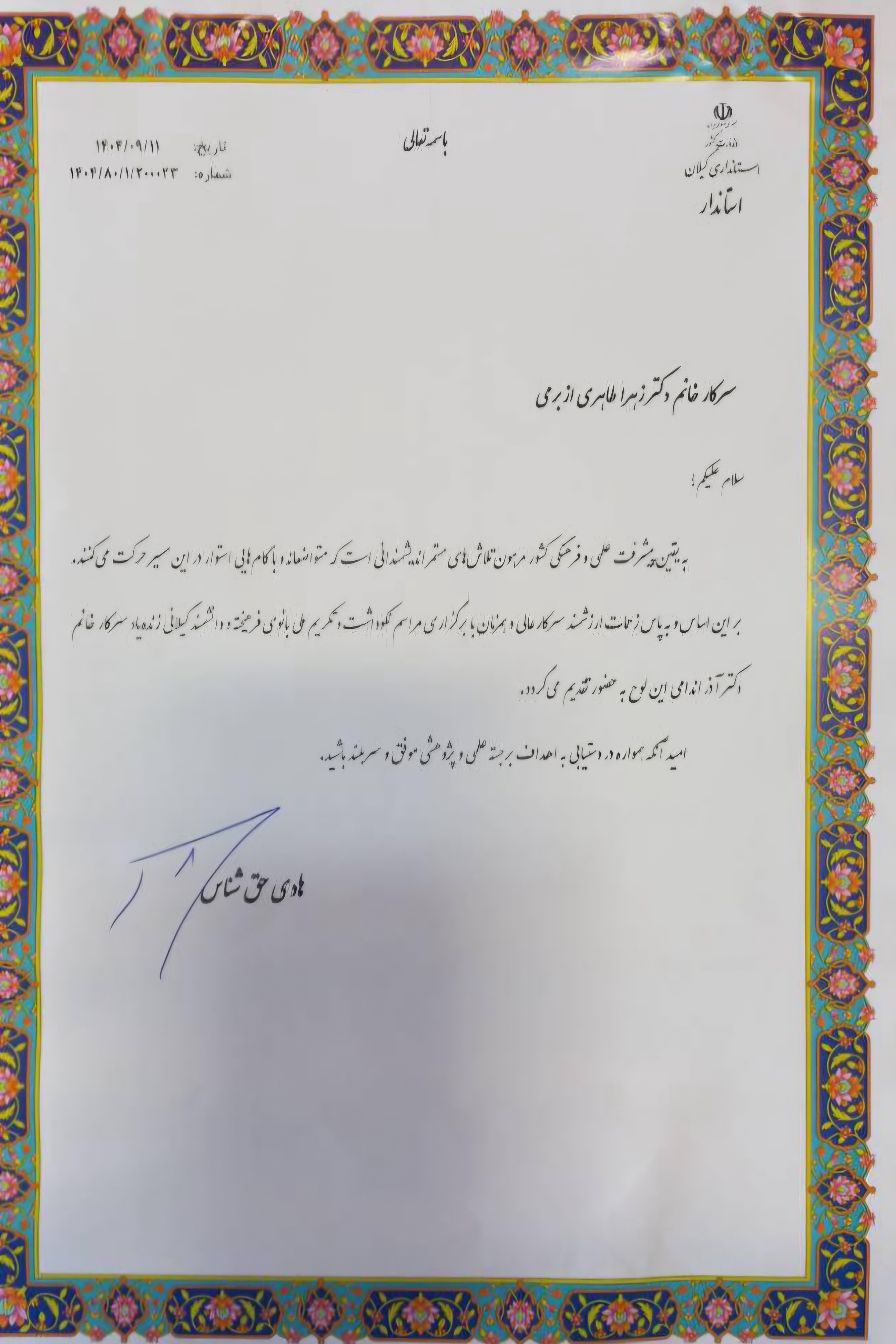دکتر زهرا طاهری؛ برگزیده «یادواره و تکریم ملی و الگوسازی بانوی دانشمند گیلانی، دکتر آذر اندامی»