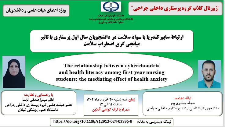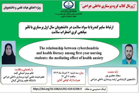 ( ارتباط سایبرکندریا با سواد سلامت در دانشجویان سال اول پرستاری با تاثیر میانجی گری اضطراب سلامت