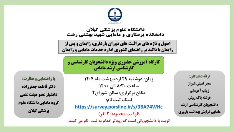 برگزاری کارگاه آموزشی ویژه دانشجویان رشته مامایی دانشکده پرستاری و مامایی شهید بهشتی رشت