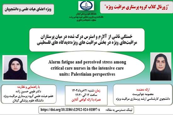 ( خستگی ناشی از آلارم و استرس درک شده در میان پرستاران مراقبتهای ویژه در بخش مراقبت های ویژه:دیدگاه های فلسطینی