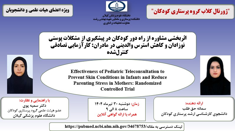 ( اثربخشی مشاوره از راه دور کودکان در پیشگیری از مشکلات پوستی نوزادان و کاهش استرس والدینی در مادران: کارآزمایی تصادفی کنترلشده