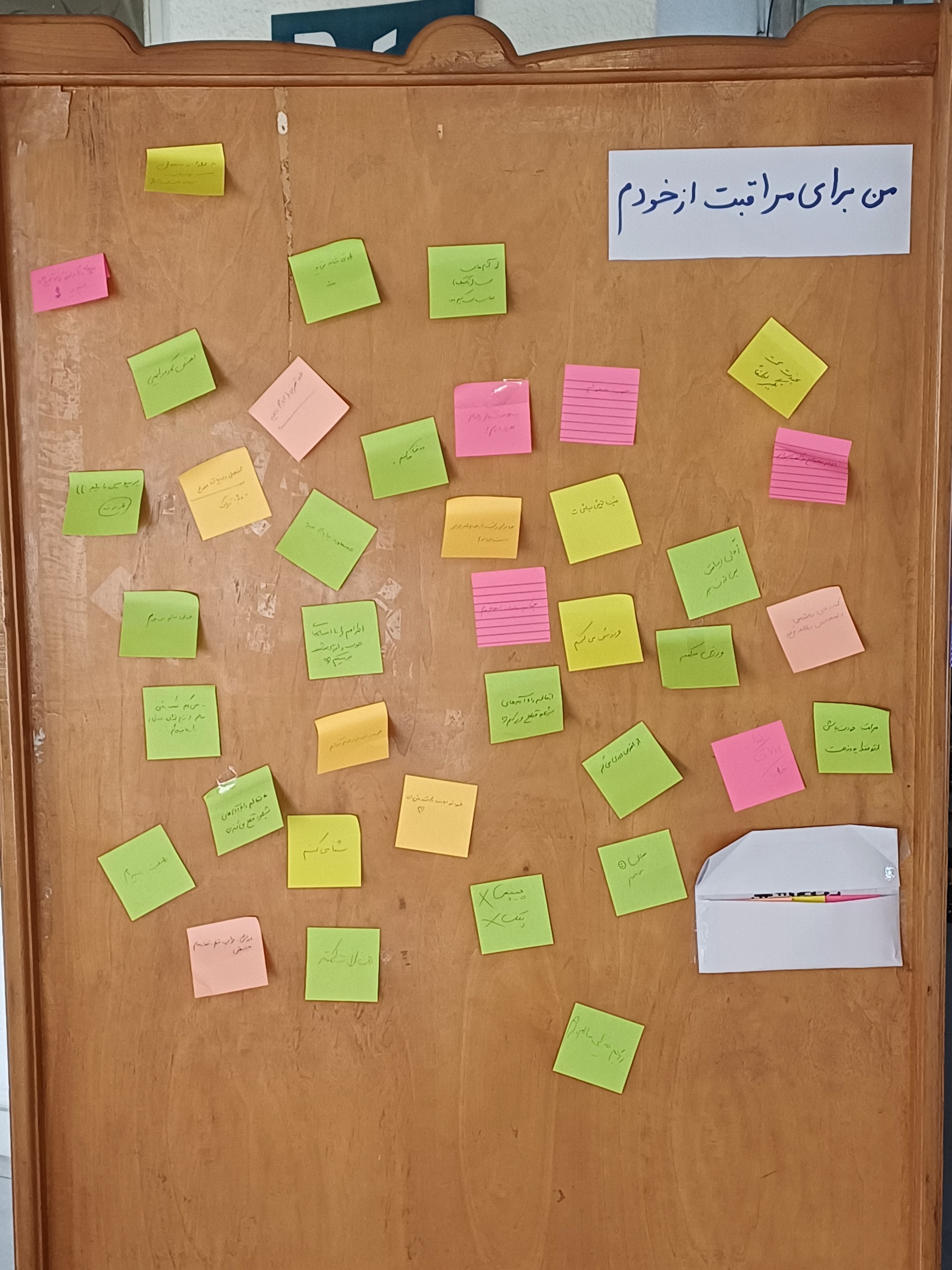 - برپایی دیوار مشارکت با عنوان «من برای مراقبت از خود…» که طی آن دانشجویان دیدگاهها و تجربههای خود را درباره شیوههای مراقبت از خود روی تابلو ثبت کردند.